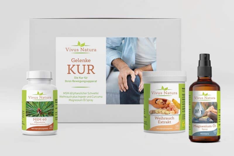 Bewegung ist Leben und Leben braucht Bewegung – um Ihren Bewegungsapparat zu unterstützen setzen wir in dieser Kur auf die pflanzliche Schwefelverbindung MSM, den Weihrauch Extrakt mit Ingwer plus Curcuma und unseren natürlichen Magnesium Öl Spray.